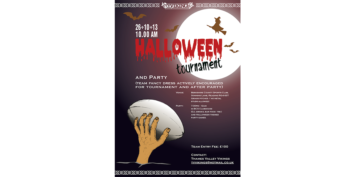 When: 26th October 2013Time: 10am Tap offVenue: Berkshire County Sports Club, Sonning Lane, Reading RG4 6STEntry Fee: £100Contact: tvvikings@hotmail.co.ukOther: Team fancy dress actively encouraged for tournament and after party.Party: 7.30pm - 12am in BCS Clubhouse (DJ, drinks, bar food - tbc) and Halloween themed party games. ...